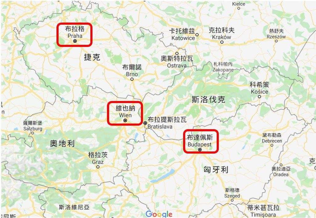 接著我就發現維也納(奧地利)、布拉格(捷克)、布達佩斯(匈牙利)三個城市剛好形成一個範圍不大的三角形,從維也納機場進及出剛好符合我的目標,再加上