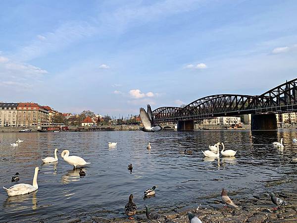 ↓布拉格伏瓦塔爾河旁的天鵝好像都不怕人,可以帶一些麵包餅乾來餵食。我覺得我可以坐在河邊,看著天鵝看著美景發呆過一天~