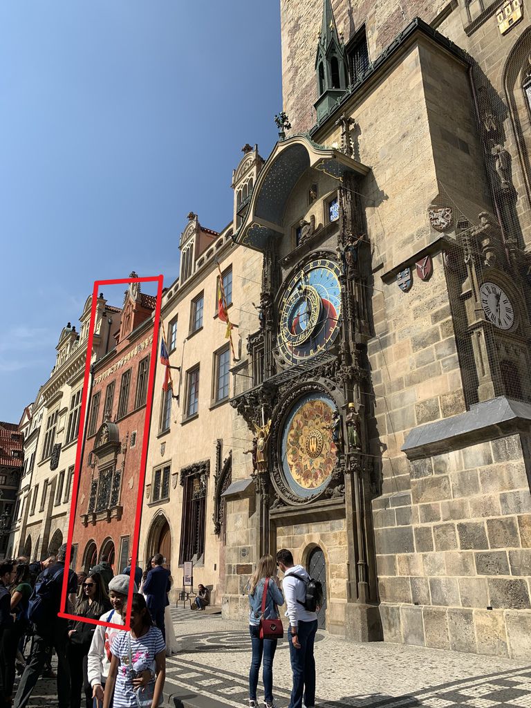 ↓入口在天文鐘旁的紅色建築物