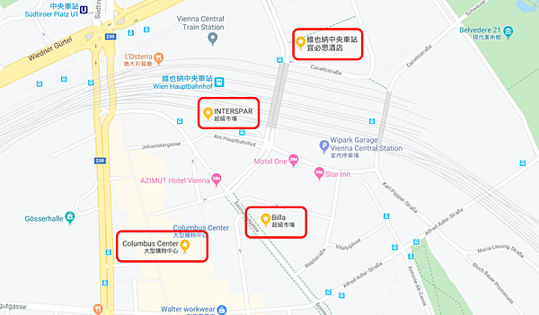 中央車站裡面有美食街(有漢堡王及麥當勞…好貴的漢堡王跟麥當勞)、有一家大型超市SPAR(有賣些簡單的熟食)、紀念品文具店、Wanner專賣店(維也納有名的巧克力威化餅)。
