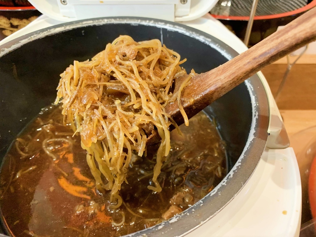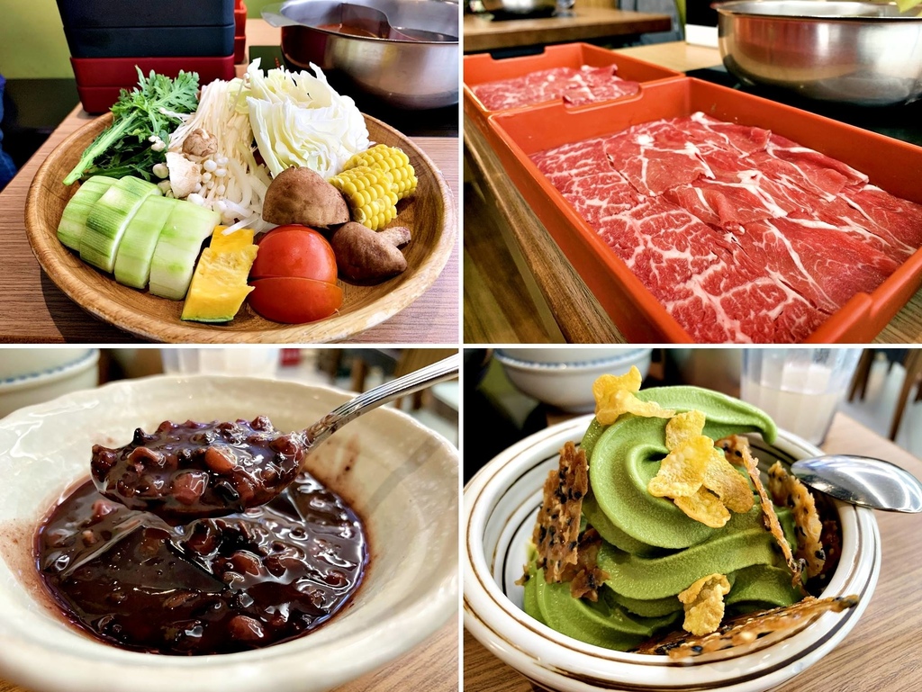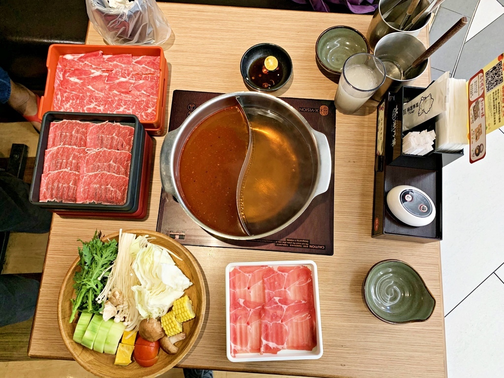 ↓「壽喜燒風味湯」雙拼「紅八味麻辣湯」