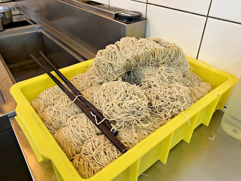 ↓意麵還沒下水之前是這樣,意麵王的生意麵也可以買回家自己煮,一坨十塊錢,我之前常買。不過因為意麵裡面含有雞蛋成分,所以保存期限沒辦法太長,大概三五天內就必須吃掉。