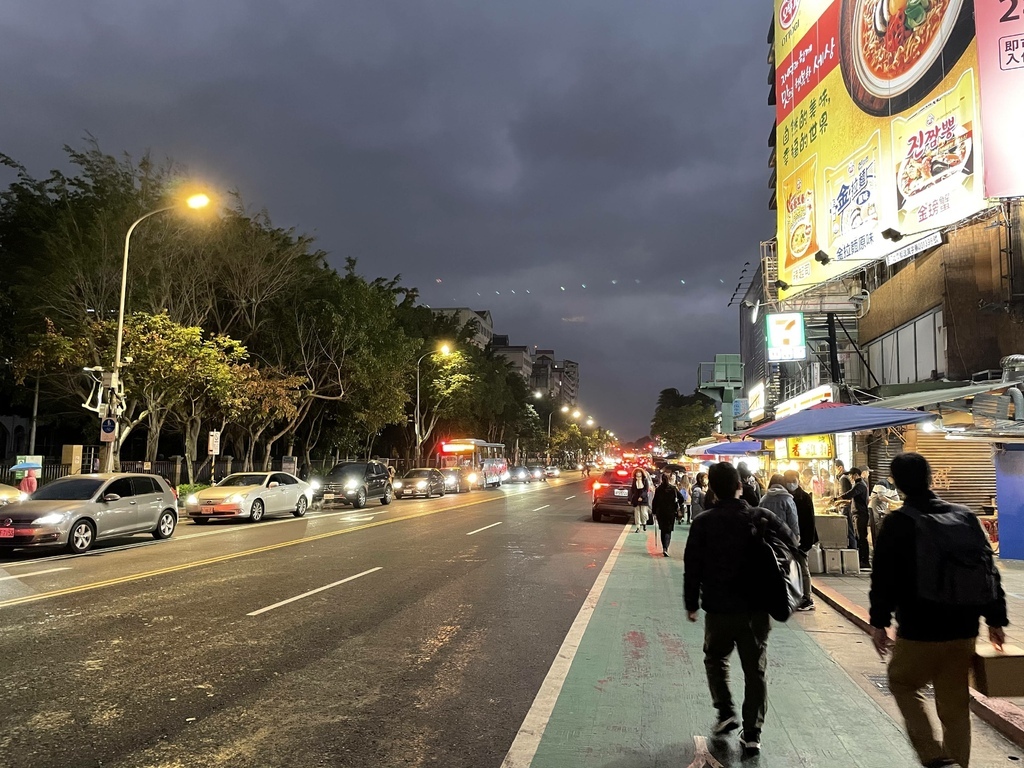 ↓捷運劍潭站1號出口後,就沿著這條基河路走,能直通大村武串燒居酒屋士林店。話說,以前這條路上總是擠滿了人,但當天是假日卻沒有擁擠人潮,我覺得目前正是來逛士林夜市好的時點。