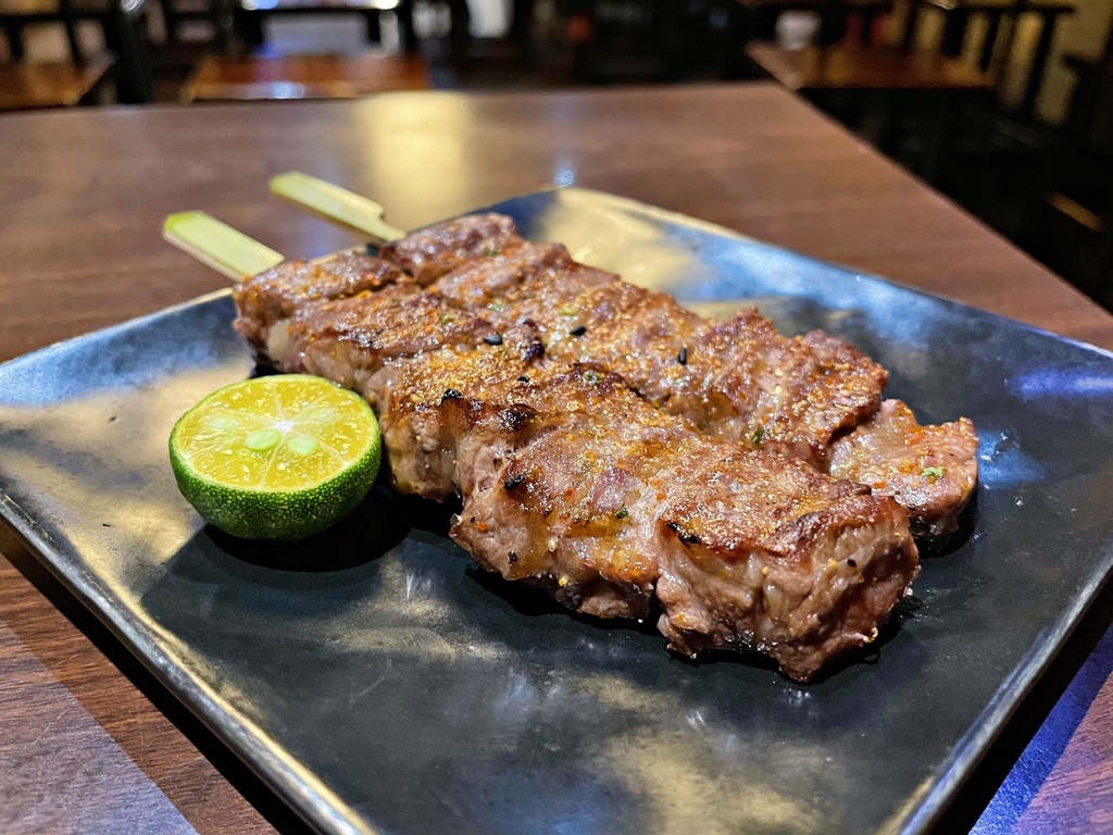 ↓鹽烤牛肋$210。這個牛肋部位相當不錯,烤到恰恰的牛肋在咀嚼的過程中會感覺到咬勁與油脂口感的混和,並且散發出牛肉香氣,搭配日式七味粉香料粉的調味,在嘴裡越嚼越香。