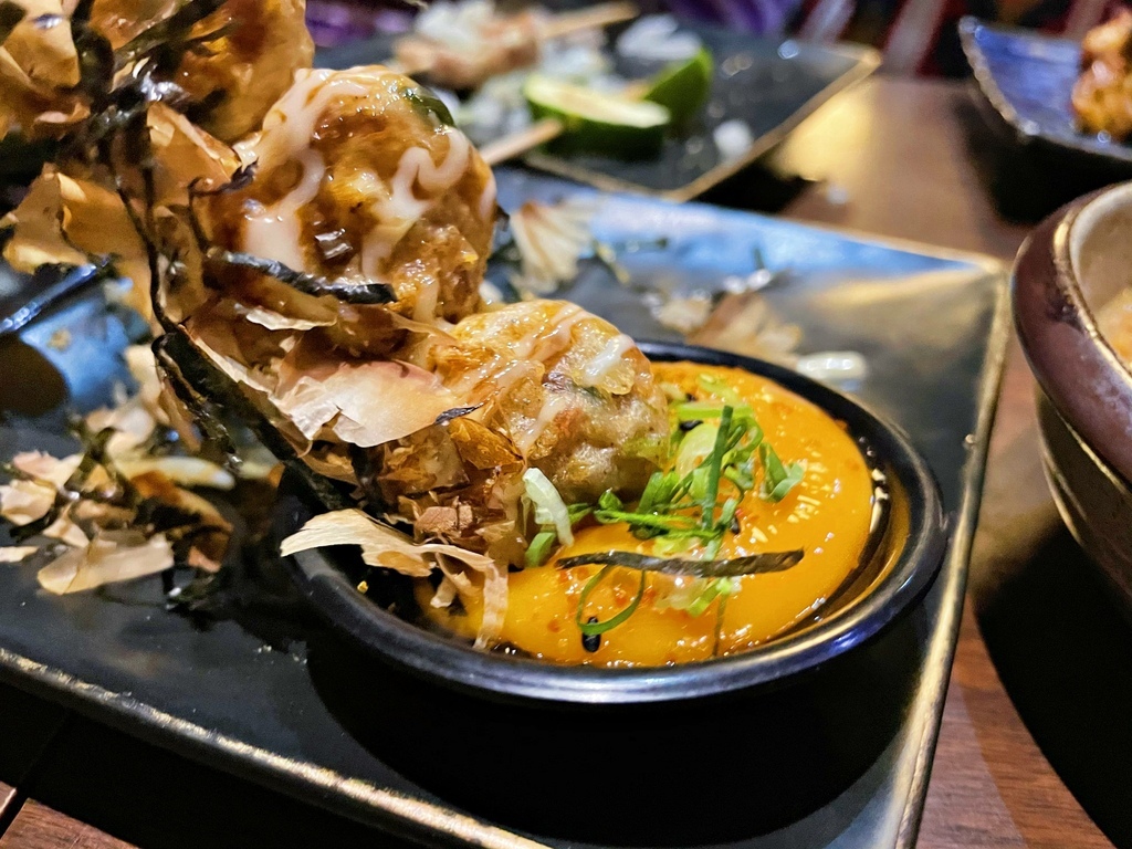 ↓手作醬燒雞肉丸$100,以黃澄澄的蛋液做為沾醬,搭配手做雞肉丸食用。
