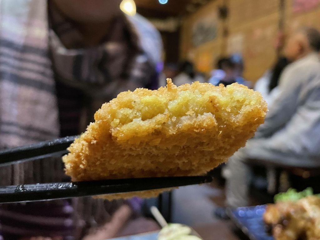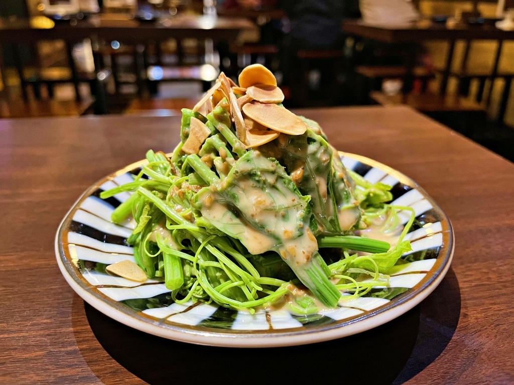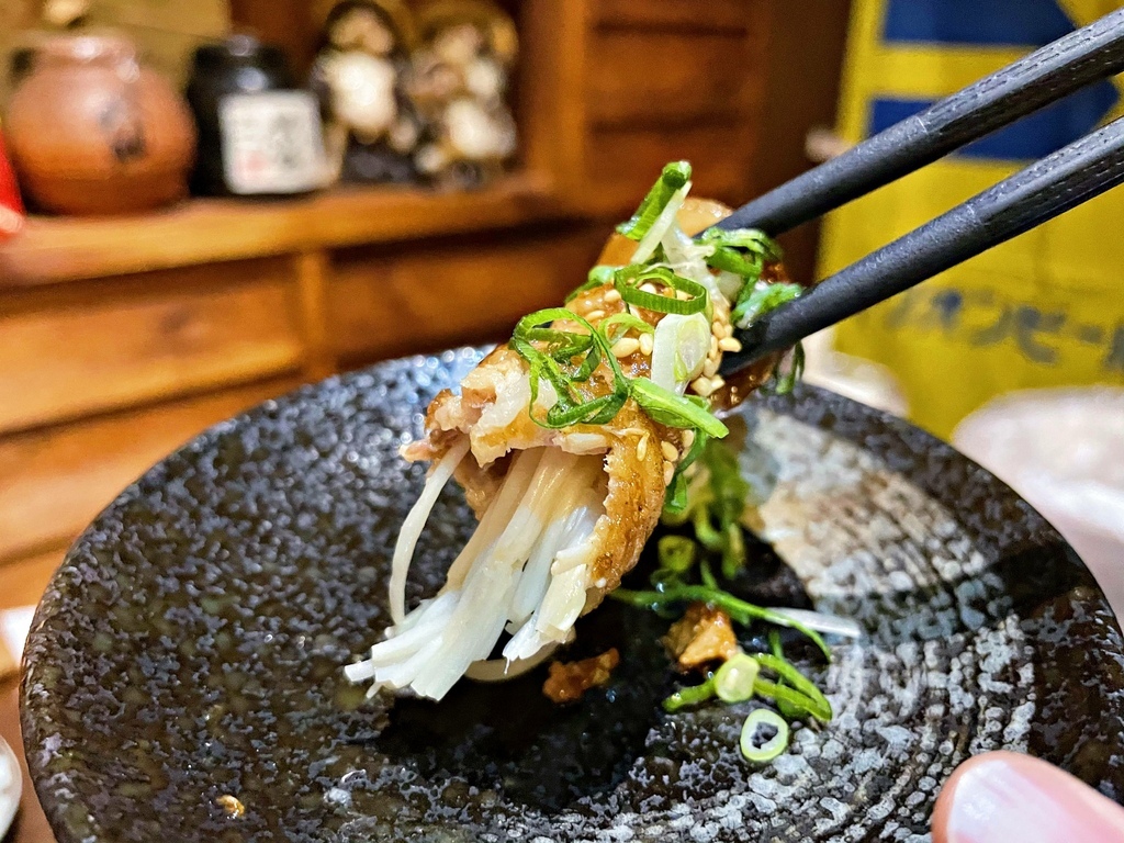 ↓醬燒豚肉捲$150,重口味的醬與沒有腥味的豬肉做搭配,裡面包著平衡口感的金針菇,但更神來一筆的是旁邊的那些蒜酥,搭配起來超適合下酒。