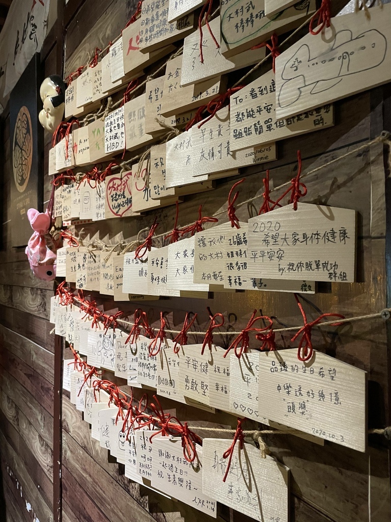 ↓一進門可以看到這個掛滿繪馬的牆,上面乘載了許多顧客的夢想與期待