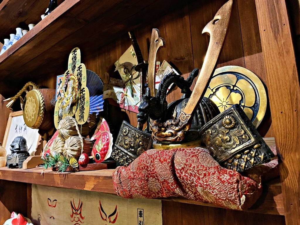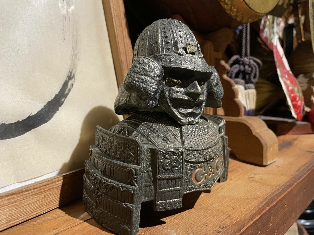 ↓架上放了許多日本元素的東西,我特別喜歡這個武士頭盔及武士造型的雕塑。