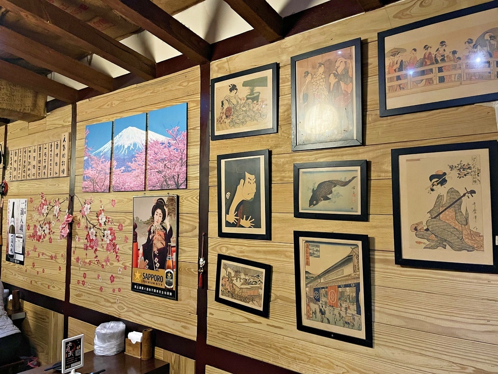 ↓這片牆上掛滿日本浮世繪風格的畫作