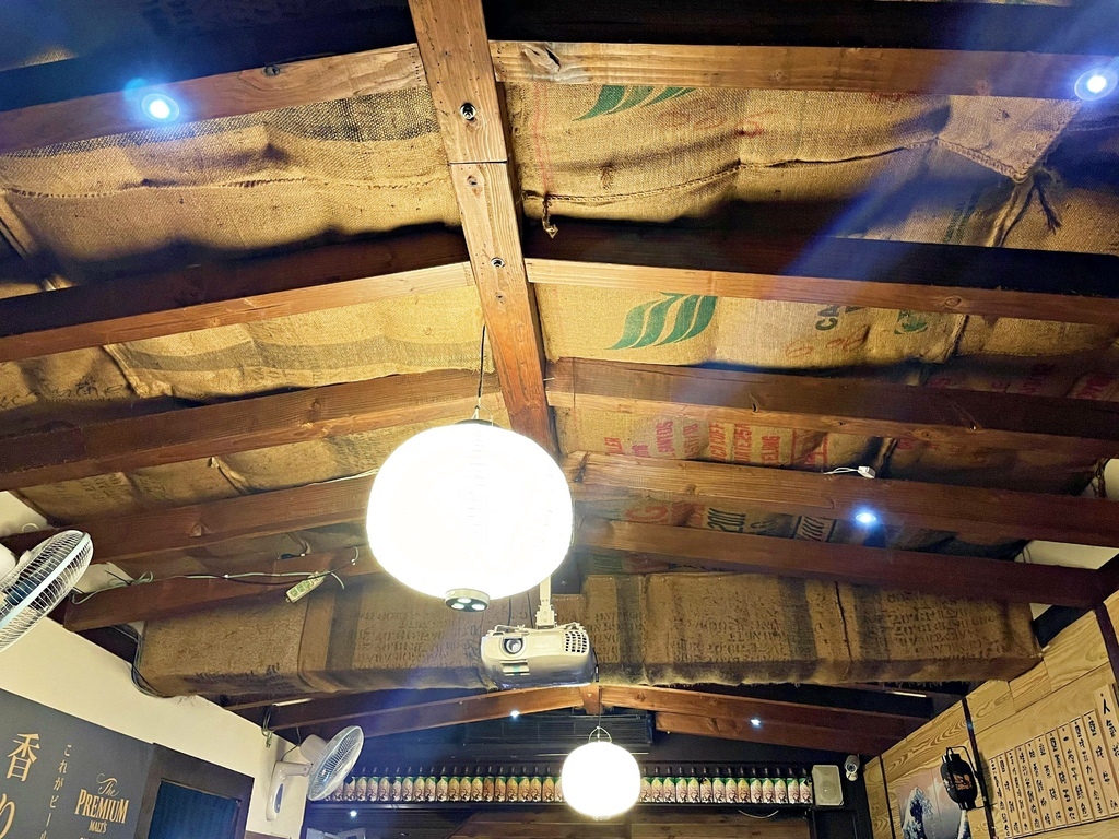 ↓我發現到這個天花板很特別,是麵粉袋嗎?