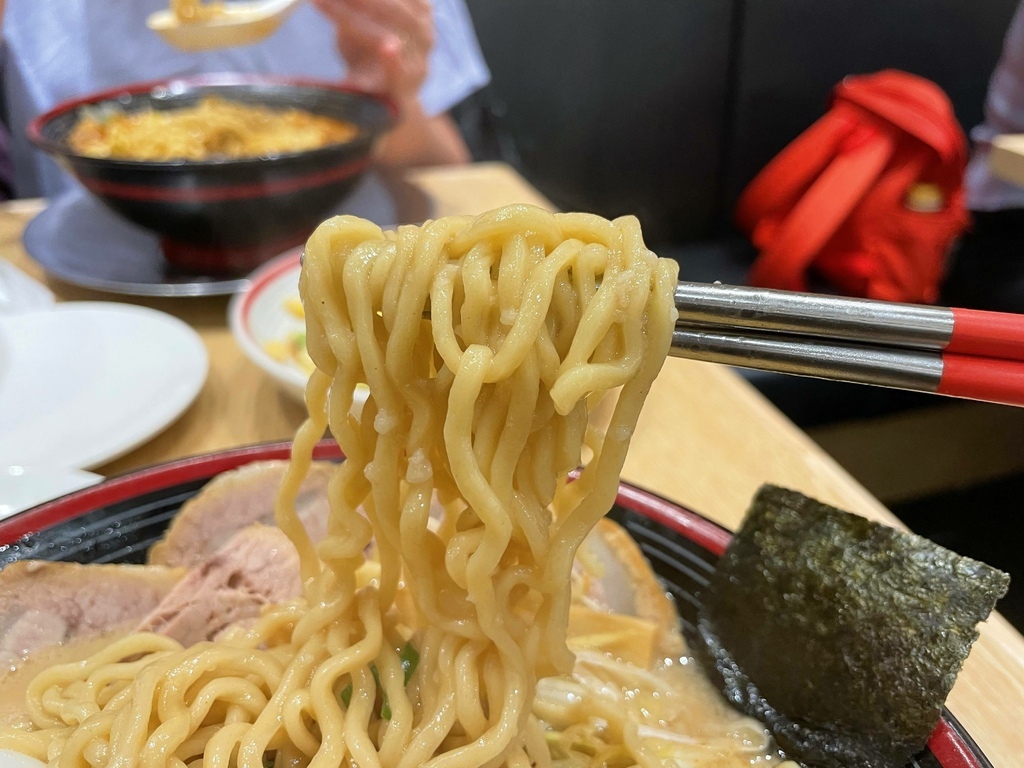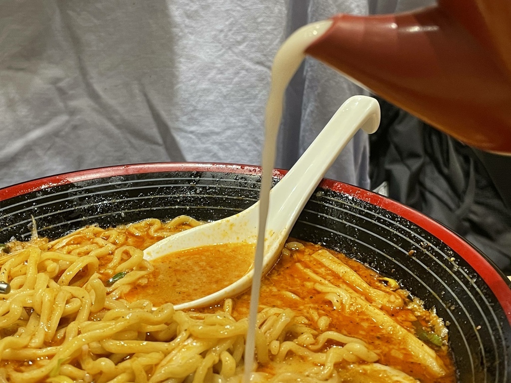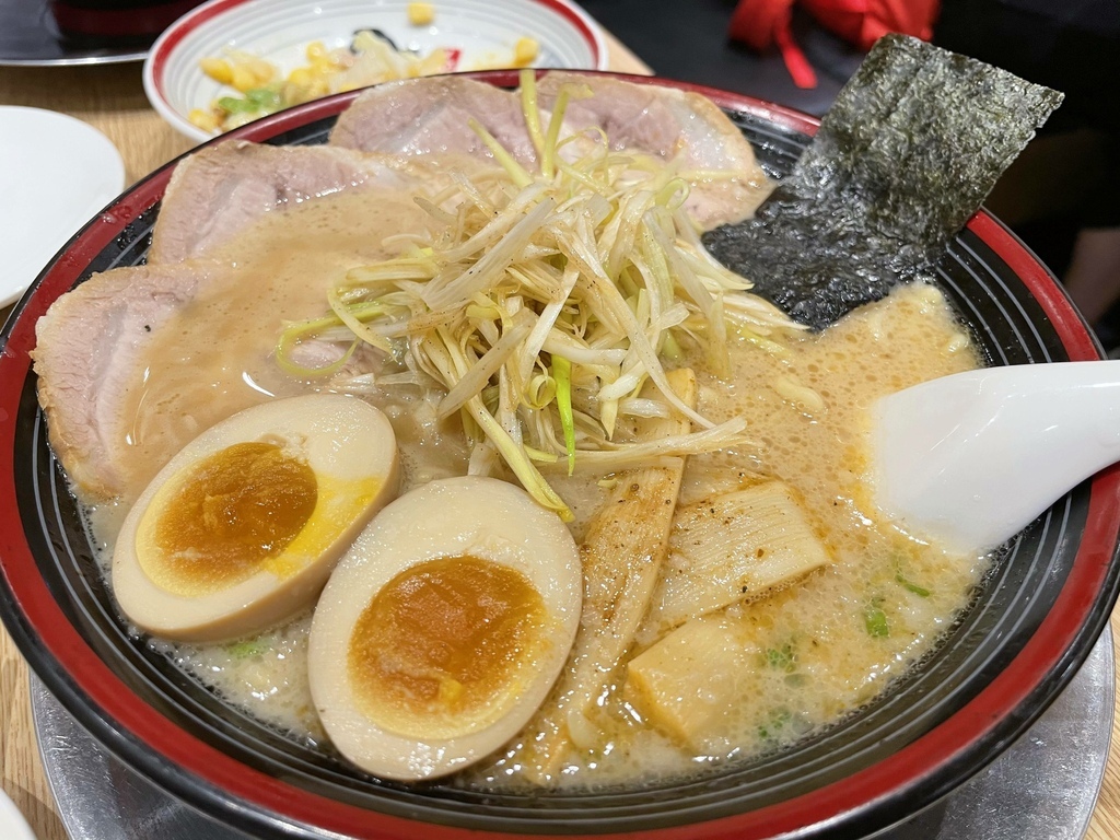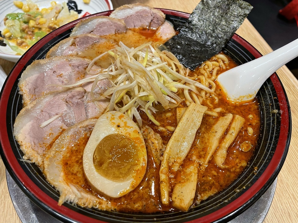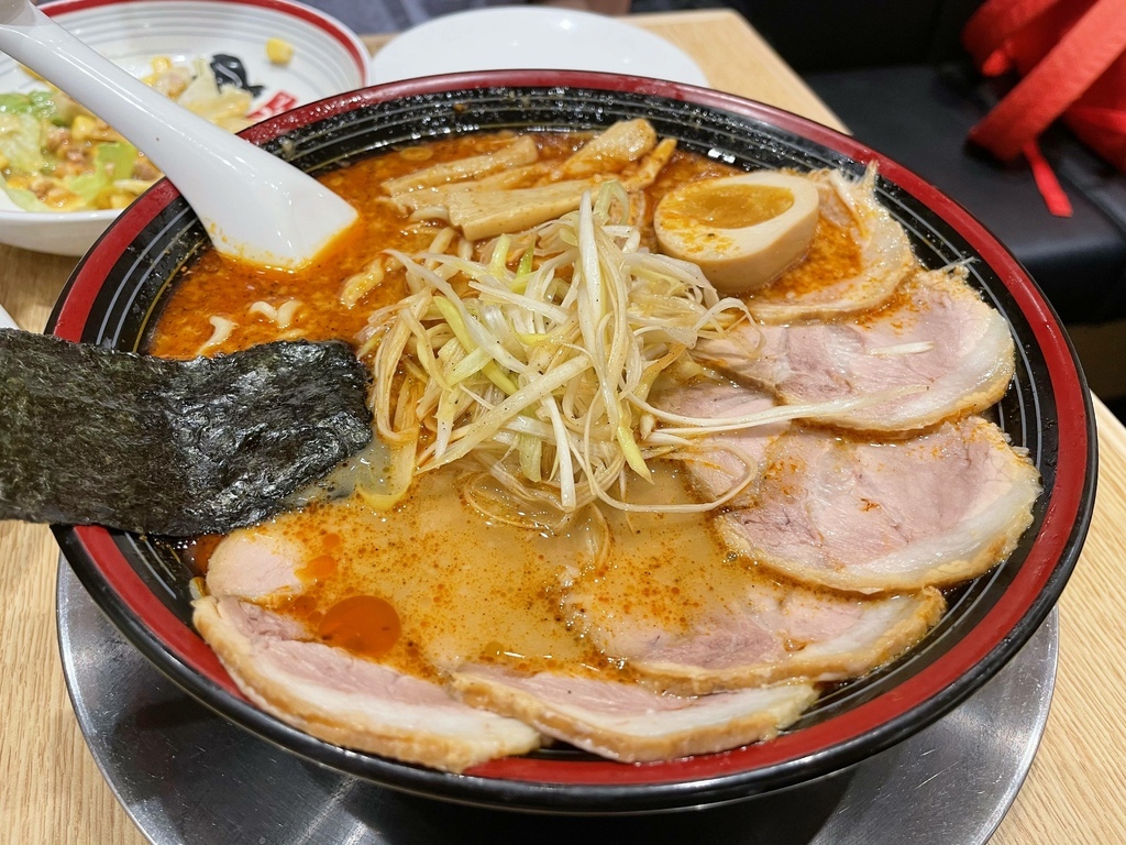 我們點的另一碗是麻辣叉燒拉麵,雖說是麻辣,但吃起來比較像是紅燒的味道,沒有感覺到辣,口味是好的。(點擊連結或IG搜尋 旅行阿麥屯京拉麵 留言分享你對這道餐點的感受)