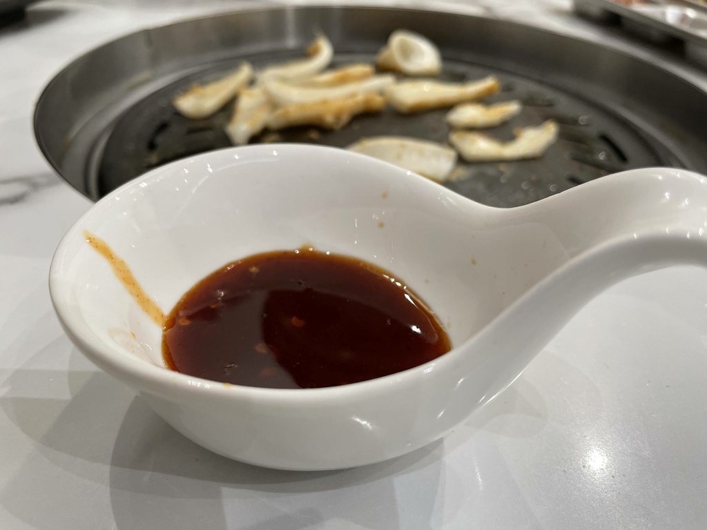 ↓韓式烤魷魚。這個魷魚一般般,沒甚麼甜度跟Q度。不過餐廳有特別給一個甜甜卻又蠻辣的醬,主要是這個醬很好吃。