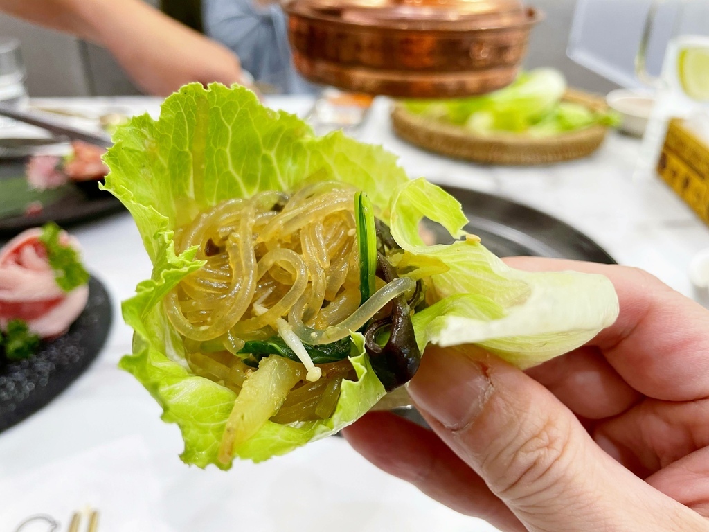 ↓因為雜菜冬粉口味比較重,店員妹妹建議我們搭配生菜吃。這概念是很不錯啦,但你們家生菜就只給一份還不能續,用這在這邊我等等怎麼包肉吃啊。