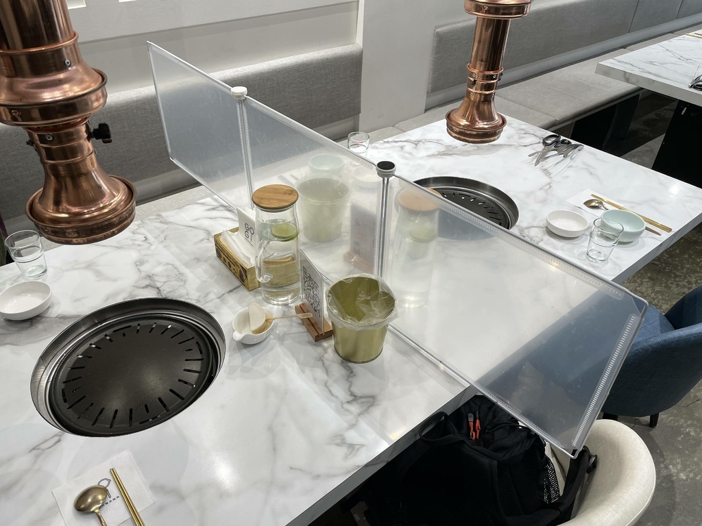 店內有四人桌、六人桌。我們當天坐的是兩人桌,兩人桌是用六人桌架隔板隔出來的,雖然位置不會太小,但當天空位還很多的情況下,在防疫的考量是不是儘量不要讓客人鄰近用餐呢?