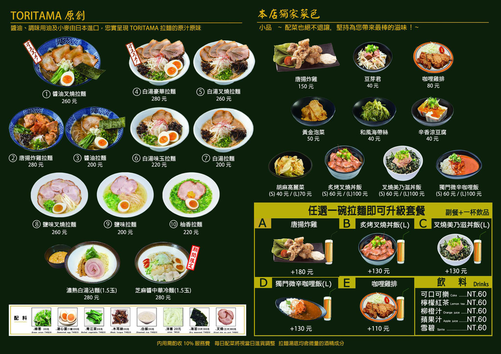 另外,有五種加價套餐可以升級,升級的套餐除了原本的主食拉麵外,還會有一份副餐及一杯飲料,阿麥算了一下,點套餐的話會比單點省了$30。