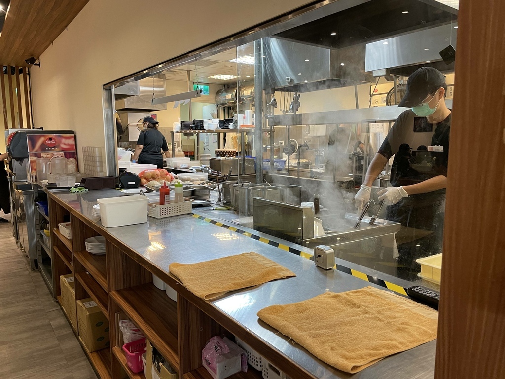 ↓廚房採開放式透明廚房,讓用餐客人可以看到乾淨整齊的廚房還有廚師認真備餐的態度。