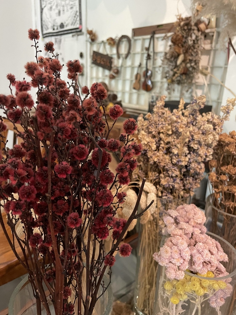 店內大量使用五顏六色不同花種製作成的乾燥花,當天有問一下老闆,這些乾燥花都是他們自己製作的。