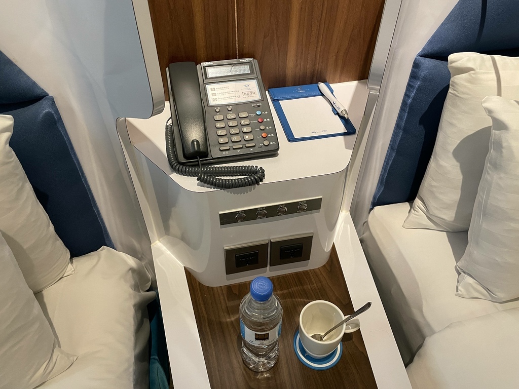 ↓床頭有插頭,邊充電邊玩手機還蠻方便的。燈光的控制台也在床頭這邊。