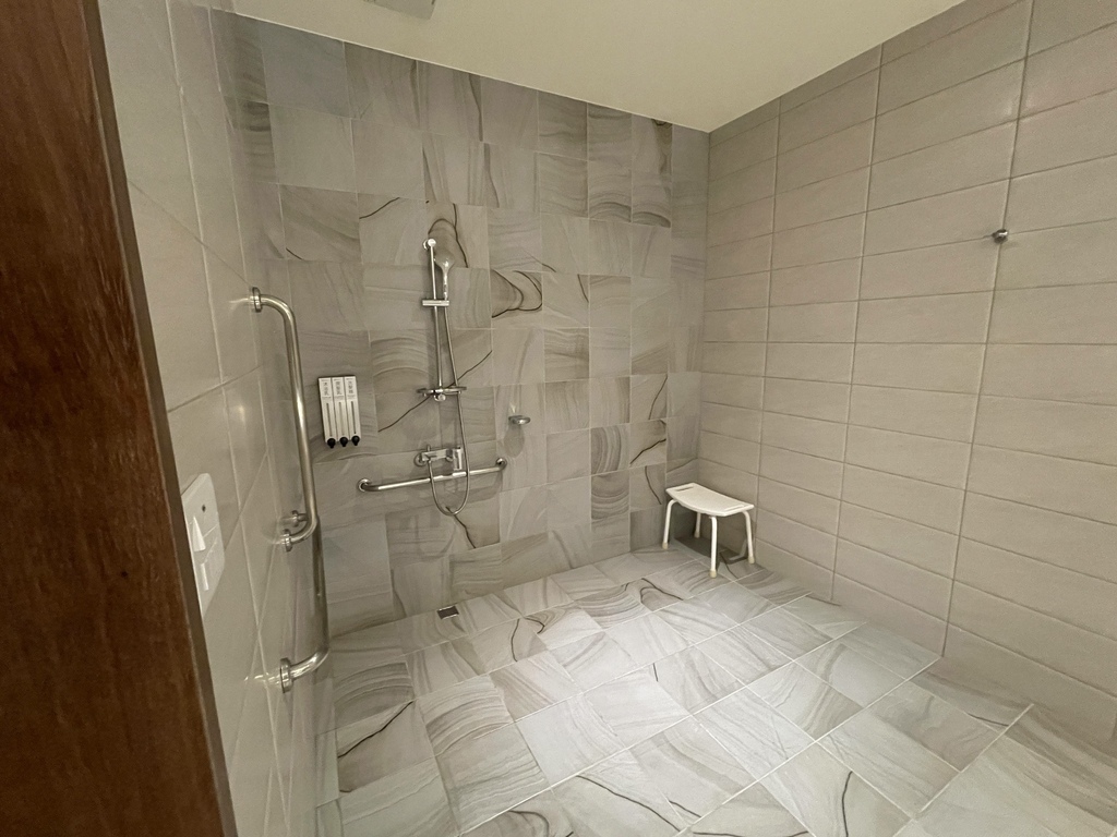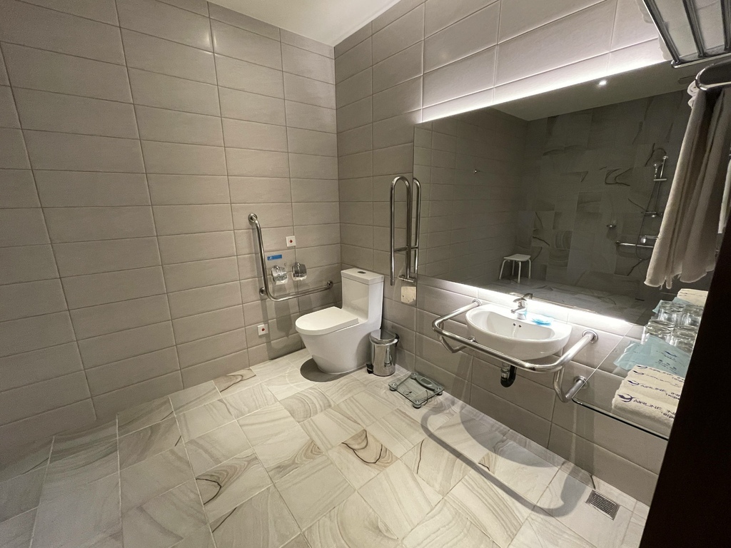 ↓無障礙廁所。雖然空間真的很大,但沒有浴缸及乾濕分離設施,每次洗完澡,整個地板面都是水。