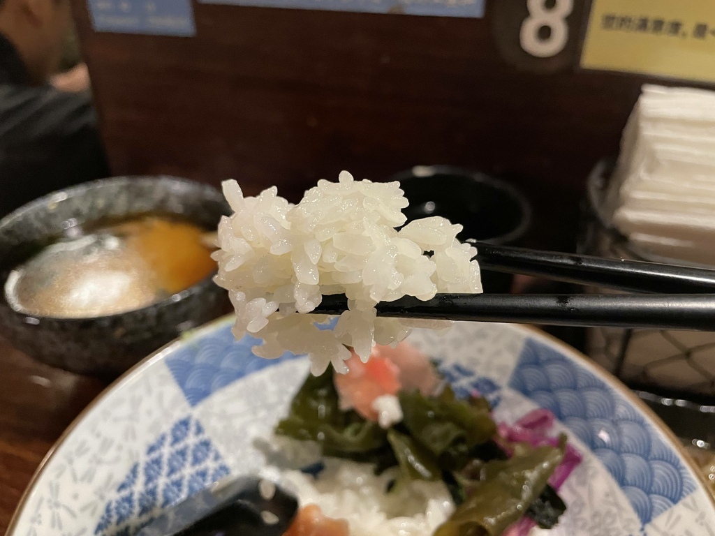 但我覺得,「平成十九」的魚肉新鮮已經是基本功,更讓我印象深刻是他們家的醋飯。醋飯米粒的飽滿度、Q度、微酸的口感都恰到好處,搭配上丼飯上的紫菜,覺得吃起來有更多層次的口感。